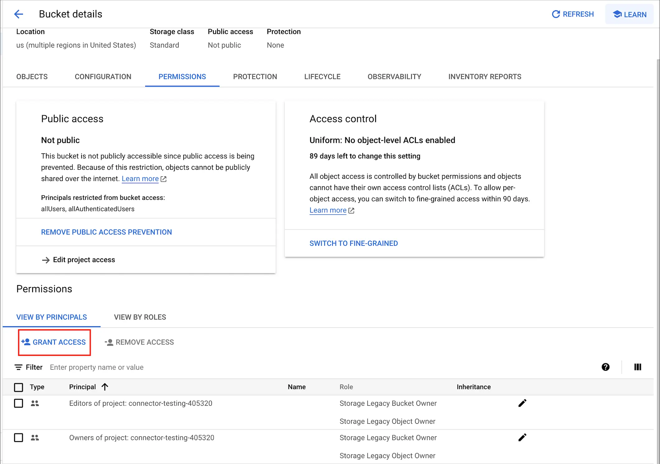 Select the "VIEW BY PRINCIPALS" tab and click on "GRANT ACCESS" button.