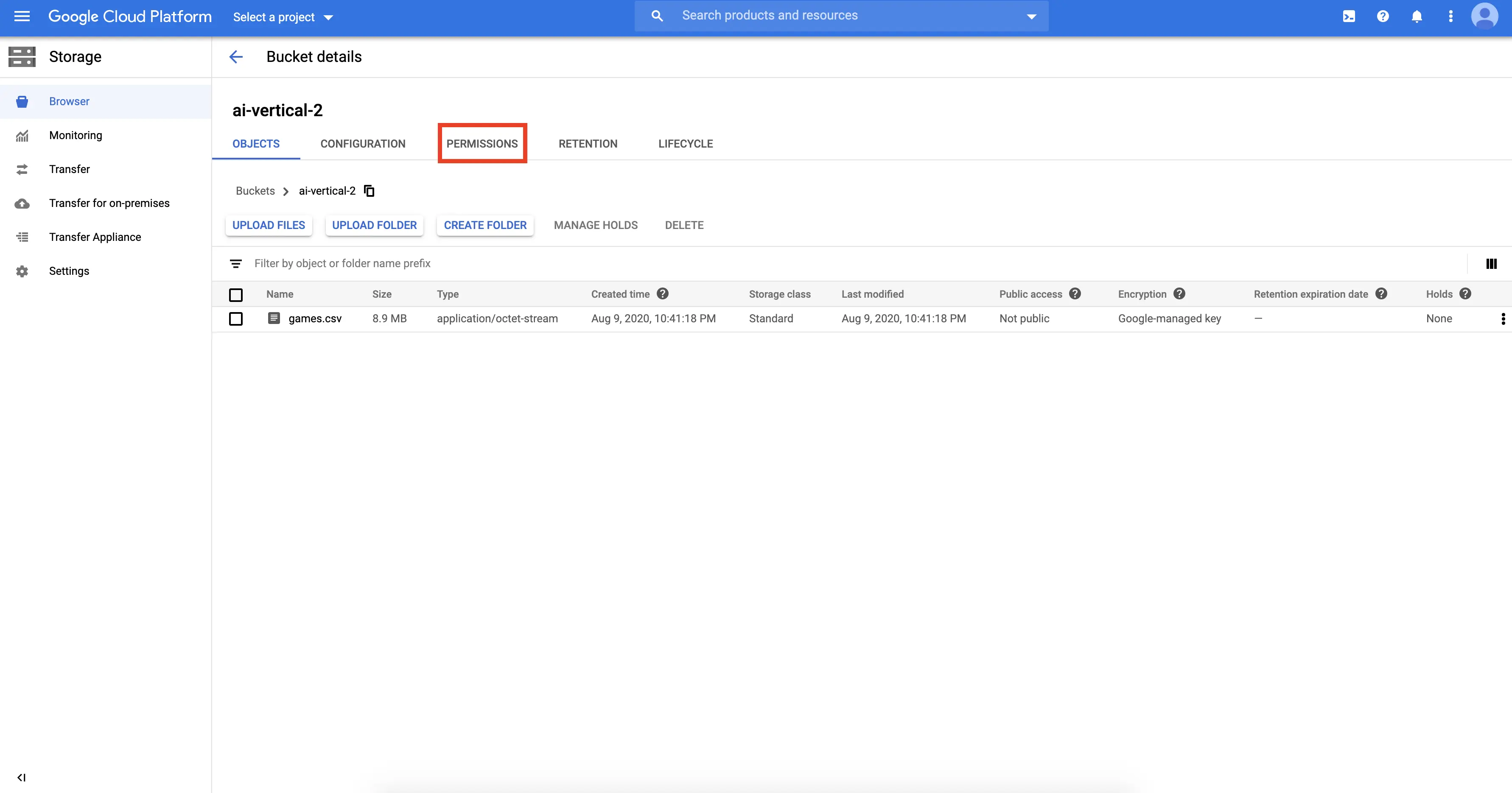 Select the "PERMISSIONS" tab.