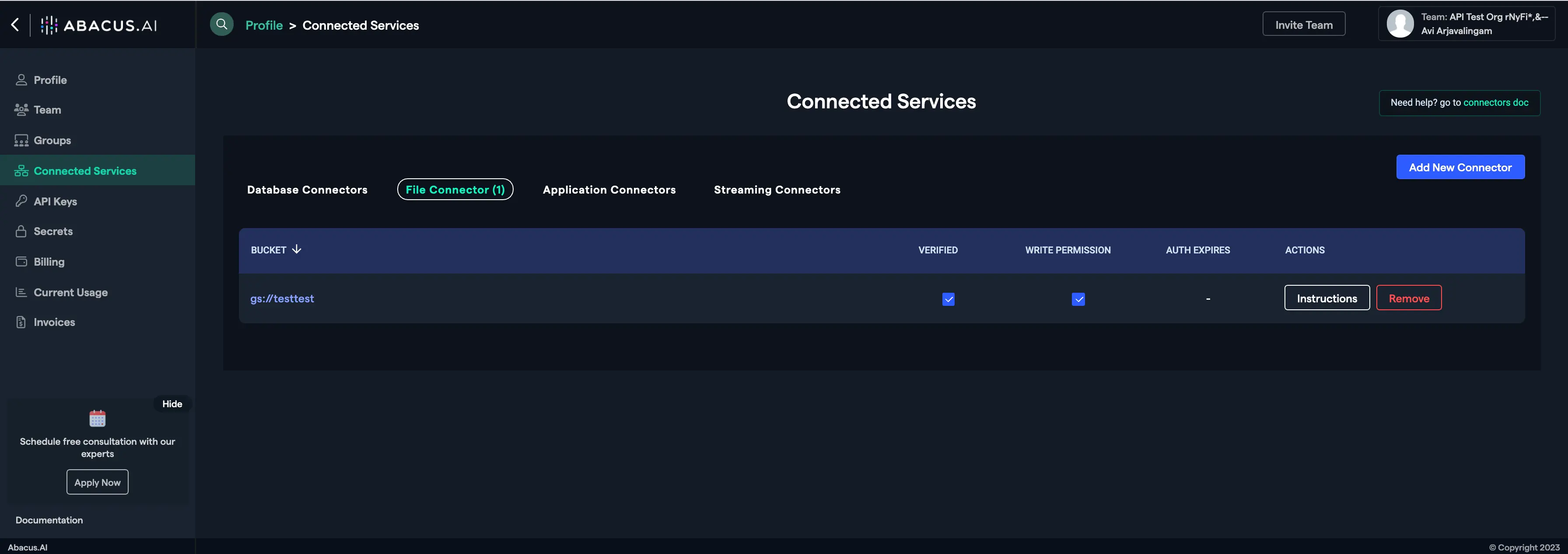 Go to the Abacus.AI Connected Services Dashboard
