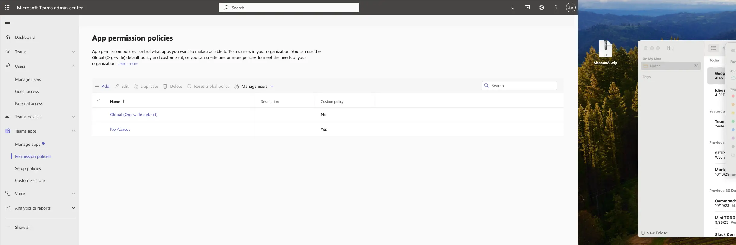 - Go to the Microsoft Teams Admin Center - Permission Policies.