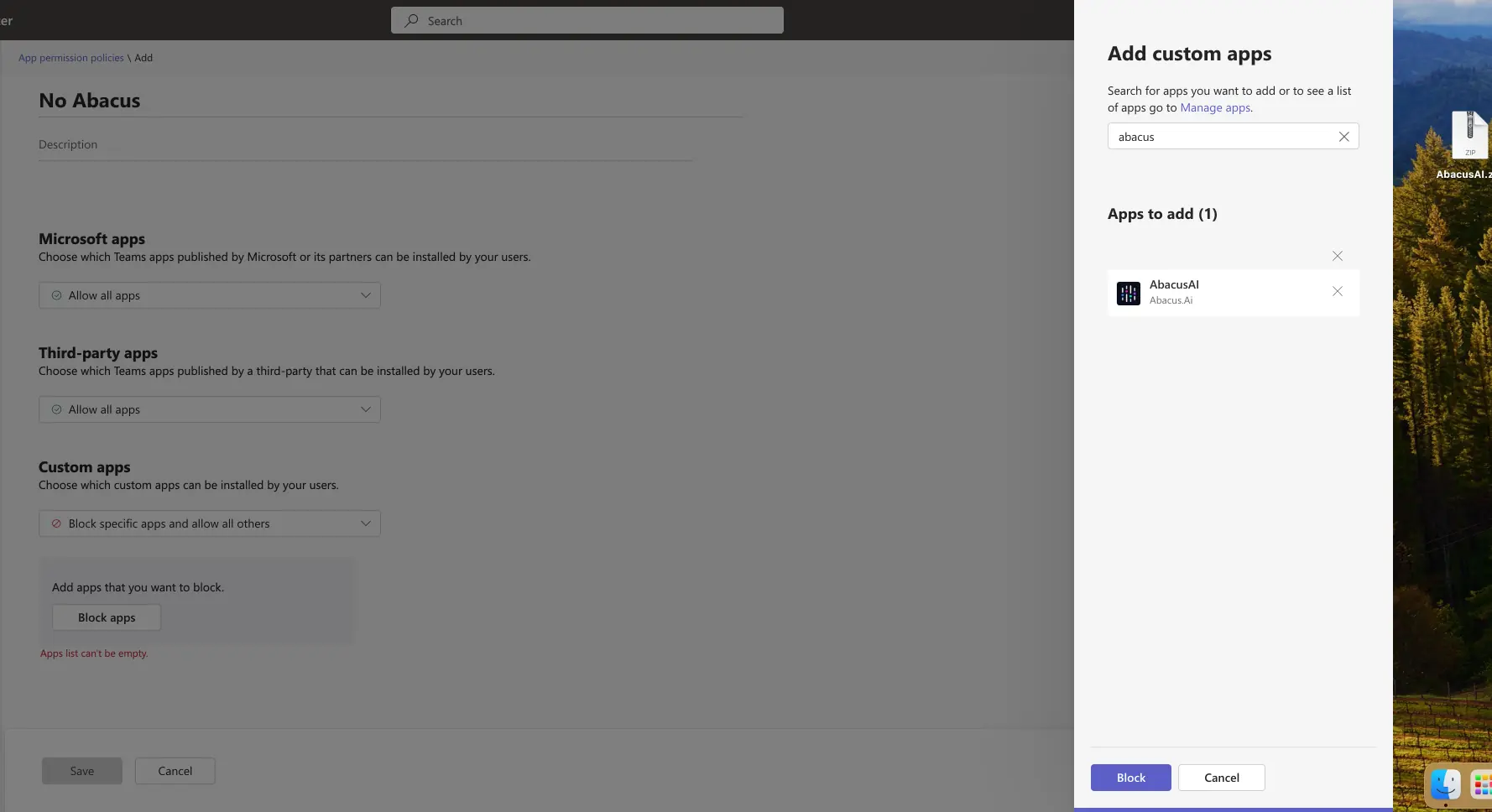Allow All Apps Except Blocked Apps: Block the Abacus.AI bot for specific users or groups.