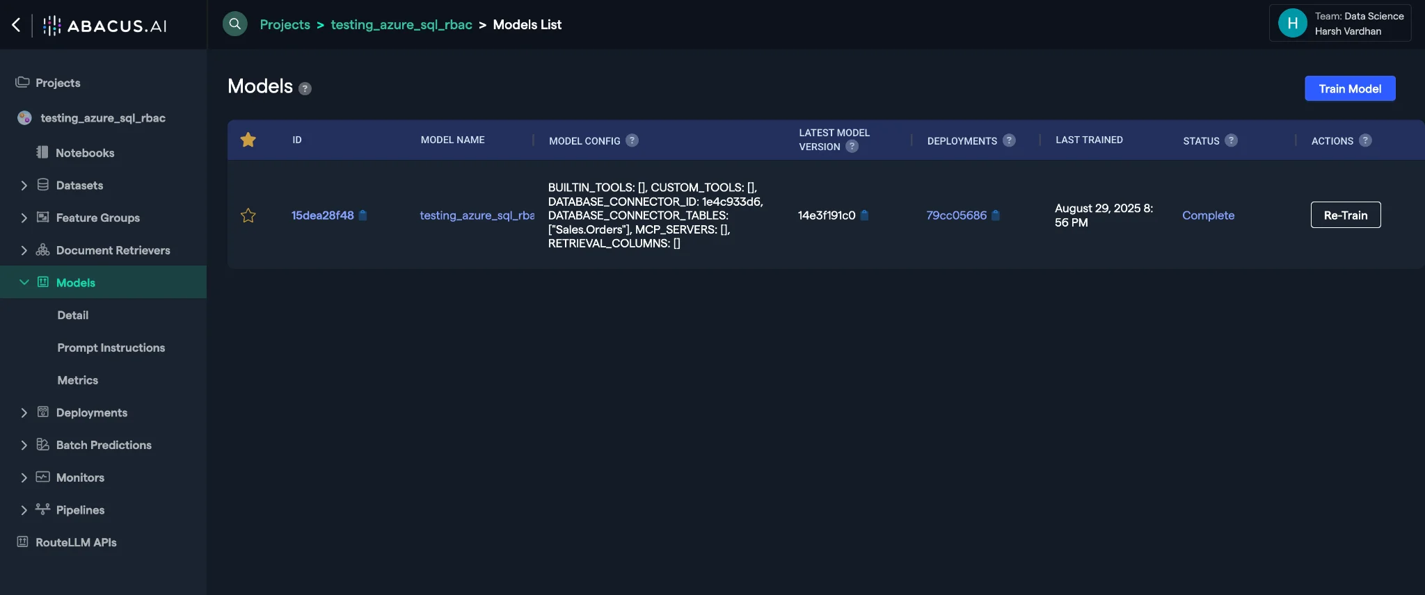 This completes the setup process for the Azure SQL RBAC user connector with Abacus.AI.