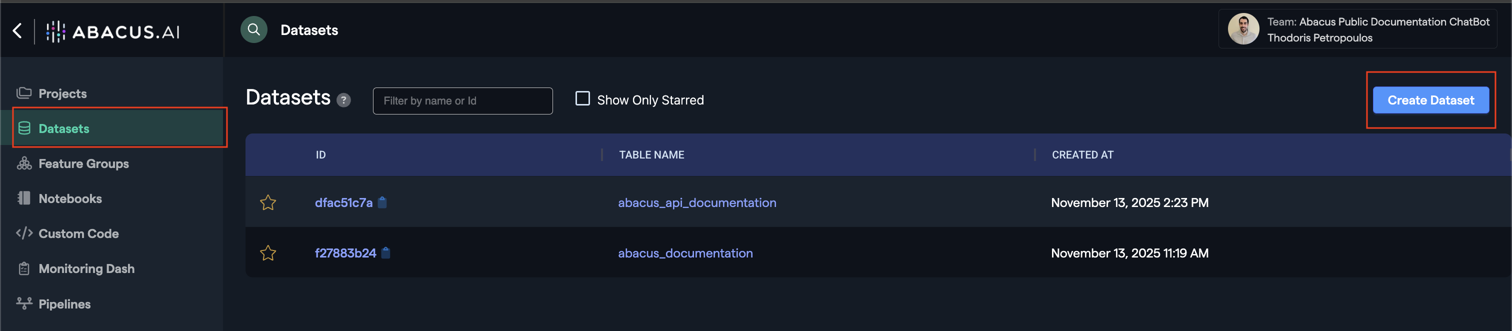 3. Click Create Dataset (top-right).