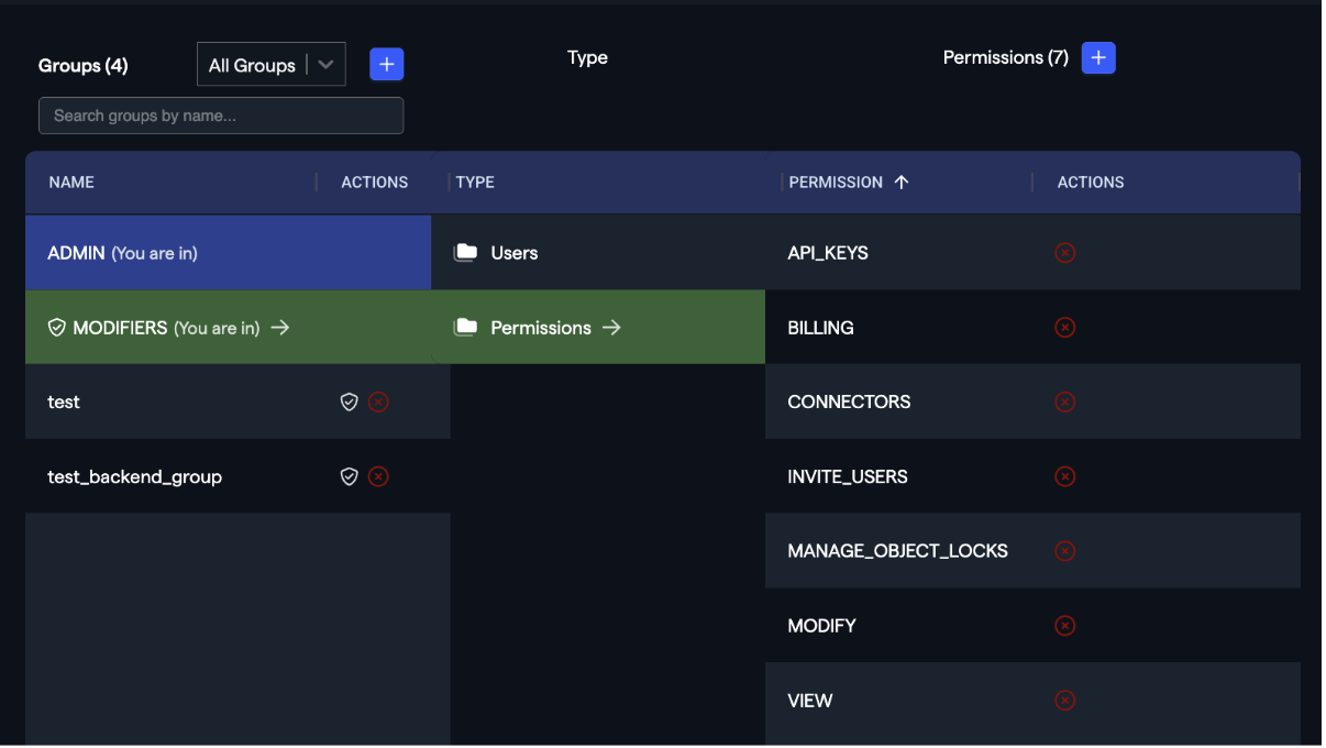 By default, Platform Users are invited into the "MODIFIERS" group with access to all available permissions. However, you can remove users from "MODIFIERS" and add them to any other group, then modify the permissions attached to each group.