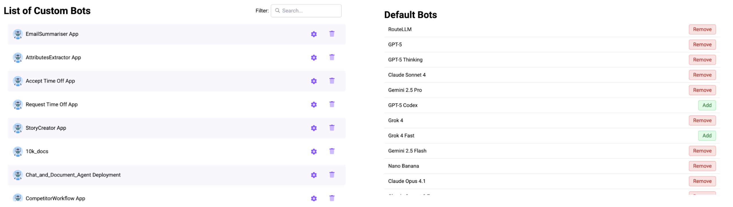 • AI Workflows: Custom AI Agents created by developers and exposed to users