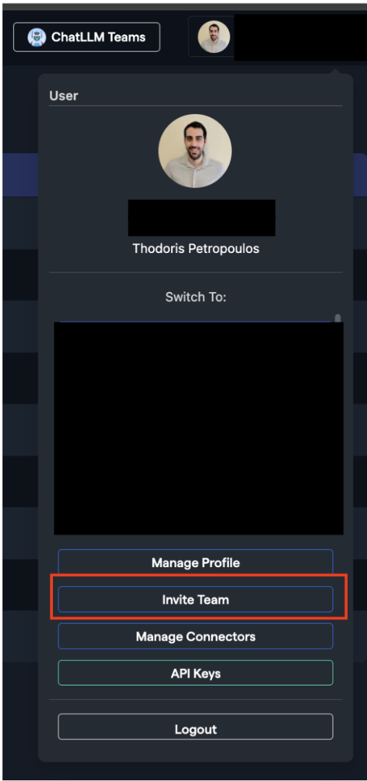 To invite users on either platform, navigate to the top-right corner and click the "Invite Team" button or access the "Team" section through the "Profile" button. "Team" just refers to the users that have access to the particular organization.