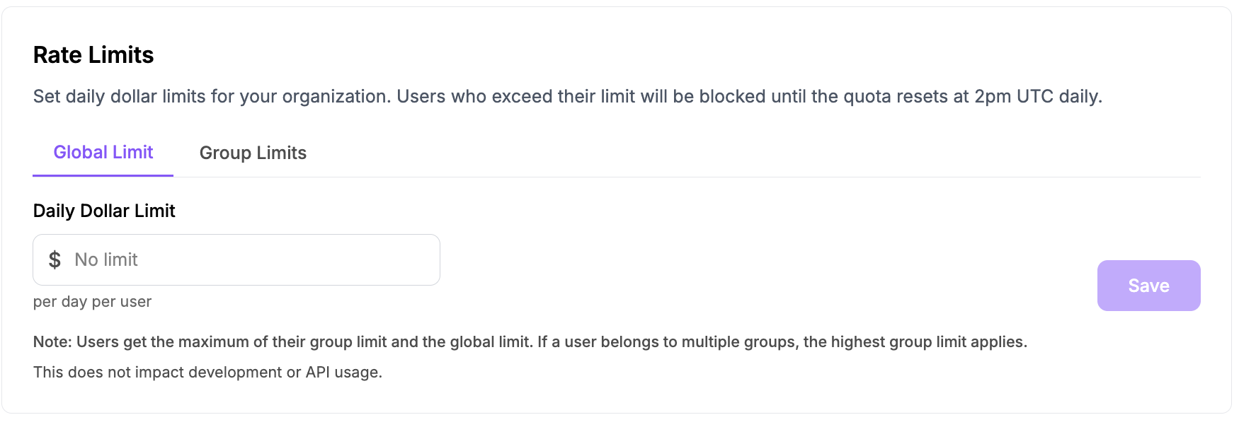 From the same dashboard: https://your-workspace.abacus.ai/chatllm/admin/permissions/, organization admins that use our enterprise plan can also throttle the usage either globally per user or per group of users.