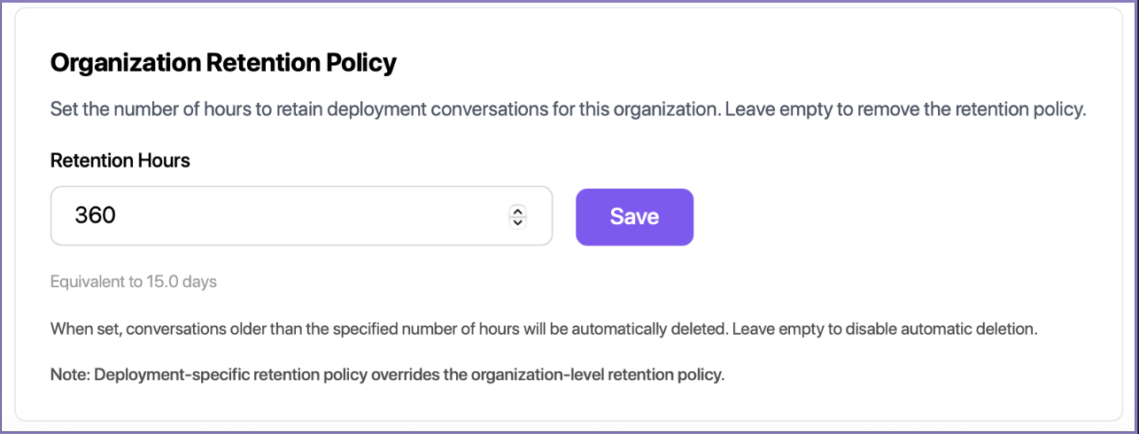 - Set the retention policy for the particular Custom Chatbot