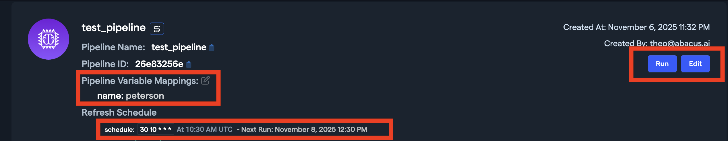 Once your pipeline is set up, you can manage it directly from the UI:
