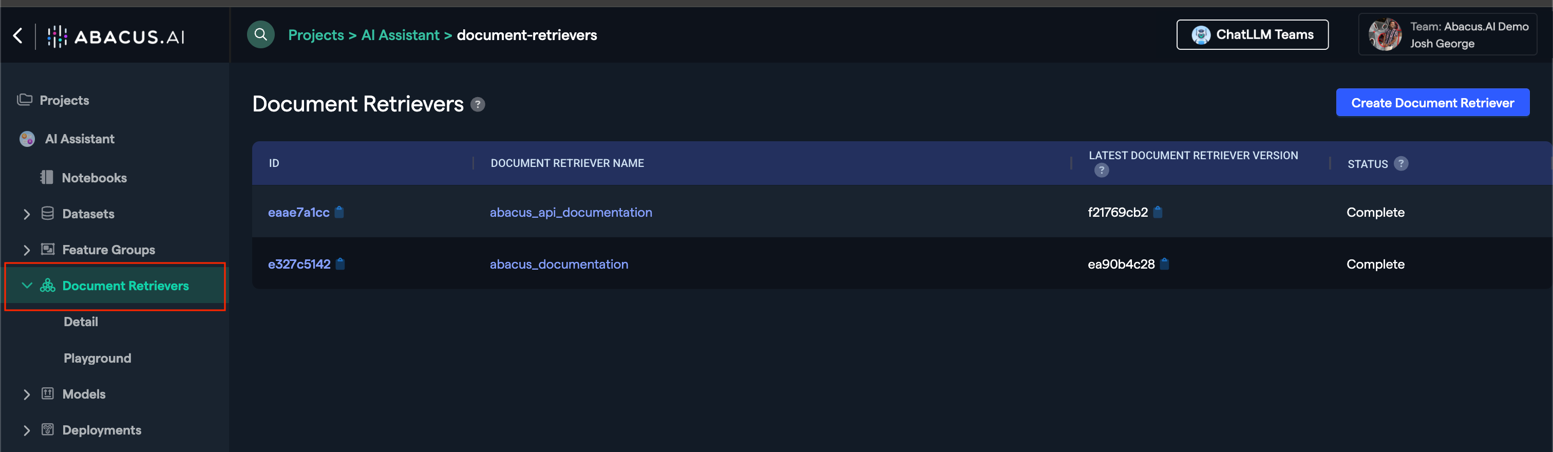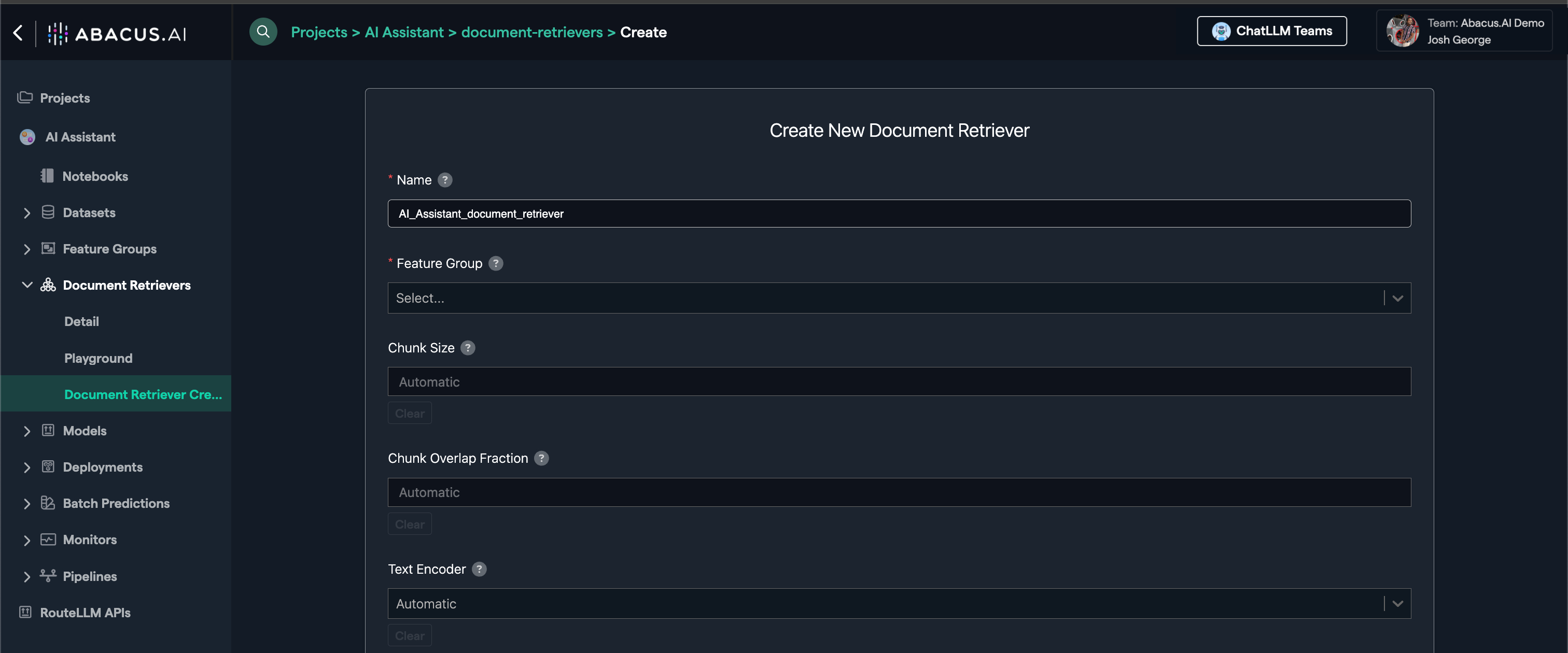 Abacus offers many options on the document retrievers page but leaving the default settings is recommended. You can also click on the ? button next to options to learn more about how they work and how they should be leveraged.