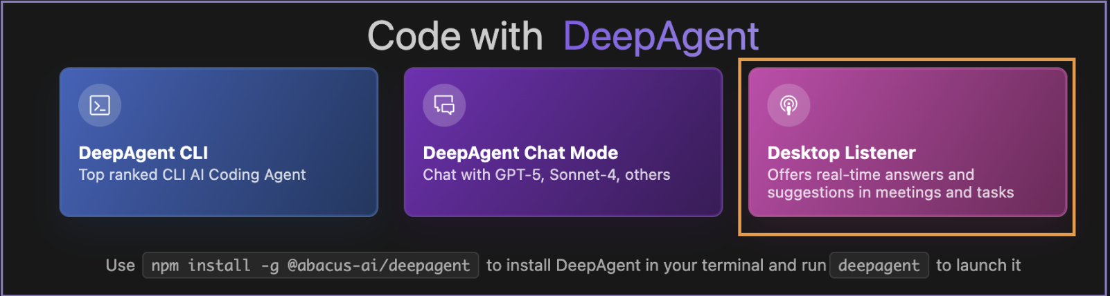 As part of our Abacus AI Desktop we have added a new listener functionality, which runs on your machine allowing you to transcribe meetings, tasks or any other audio events.