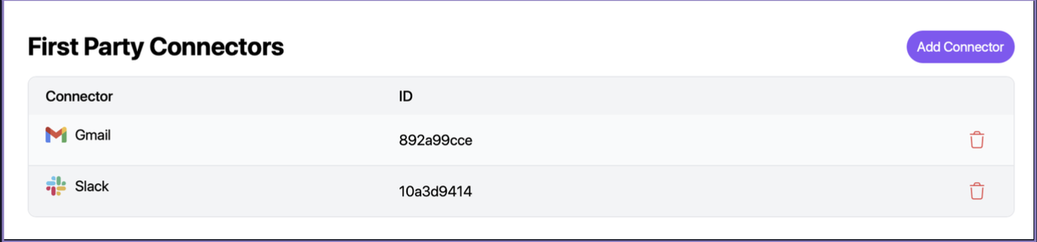 Users can now authenticate their own connections into popular applications and perform basic search functionality (e.g. across messages, emails, documents) as well as common actions (e.g. sending an email).