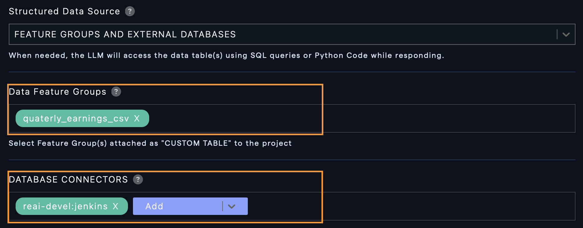 A new option when building custom chatbots on structured data allows the integration more seamlessly between feature group and database data sources.