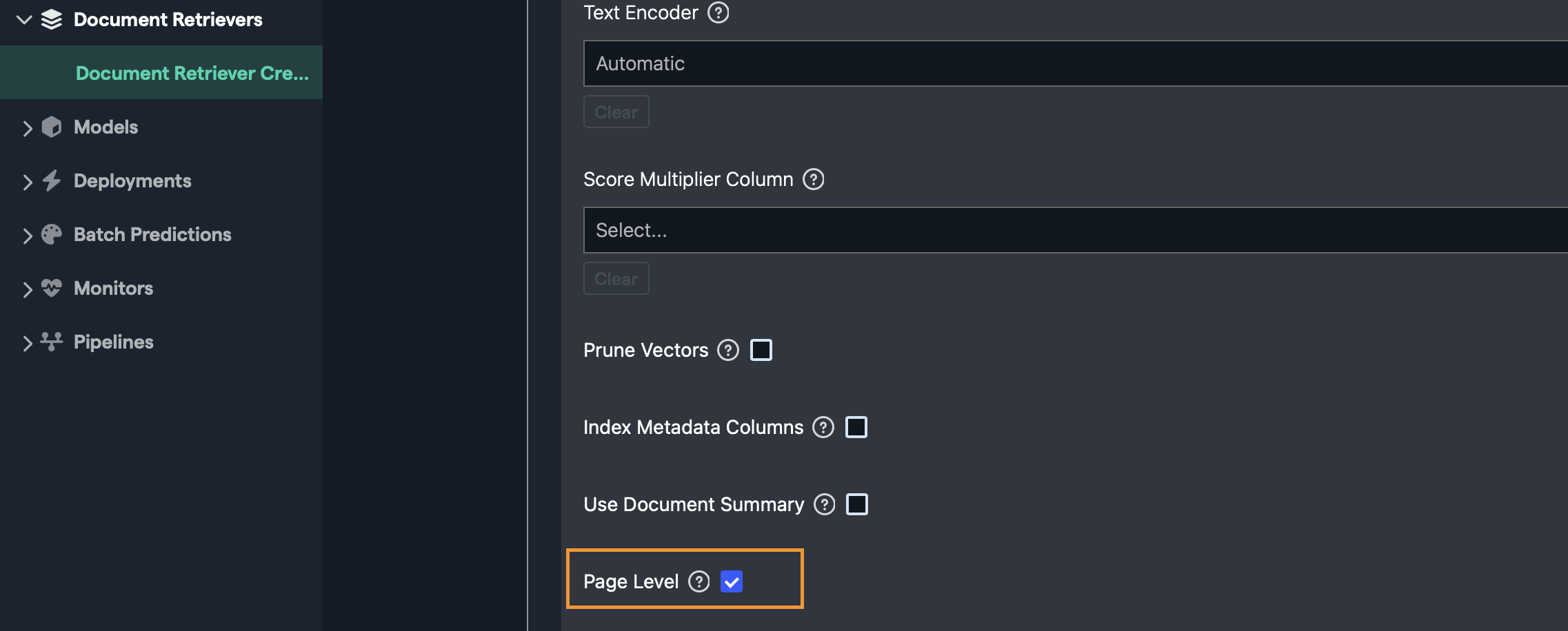 To enable this capability, it must first be toggled on when building the Document Retriever