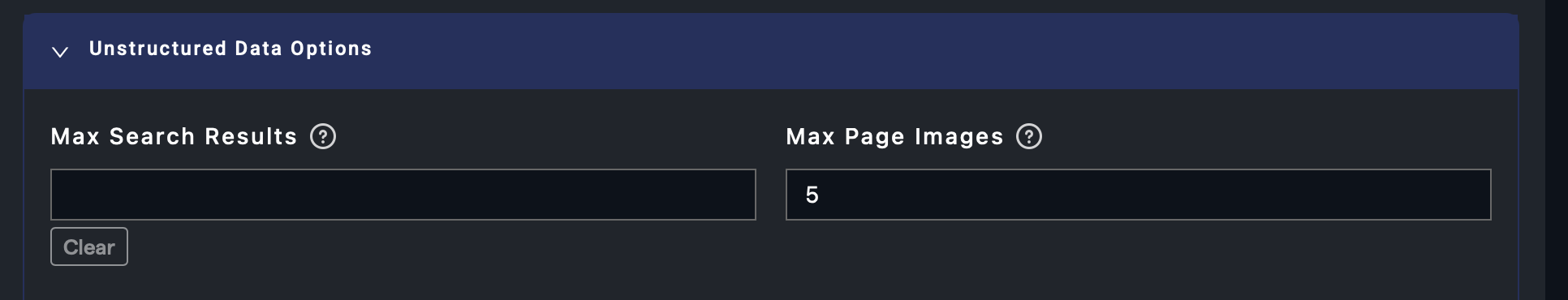 After adding page level Document Retrievers to a chatbot configuration additional options are available in the Unstructured Data Options