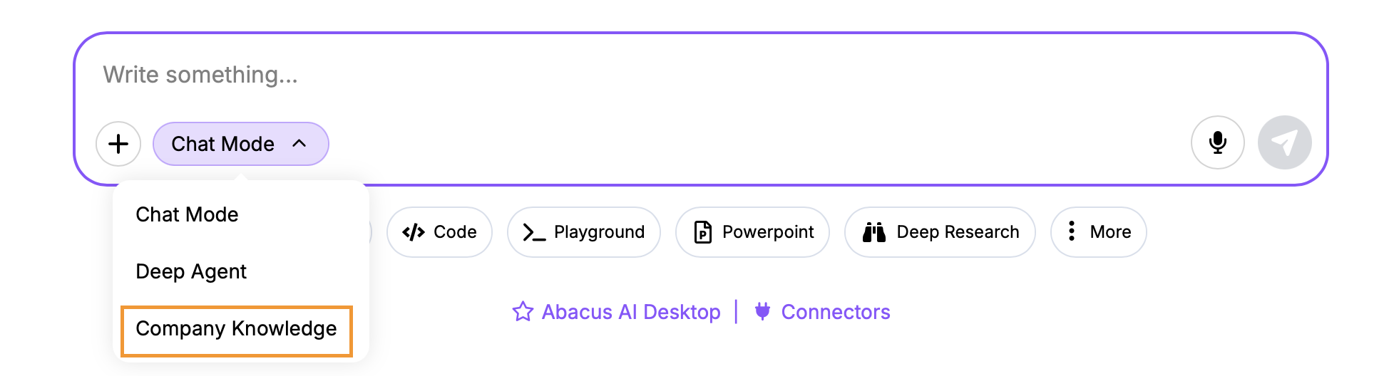 Enabling Company Knowledge is straightforward - select it from the chat mode drop-down at the bottom of the prompt window: