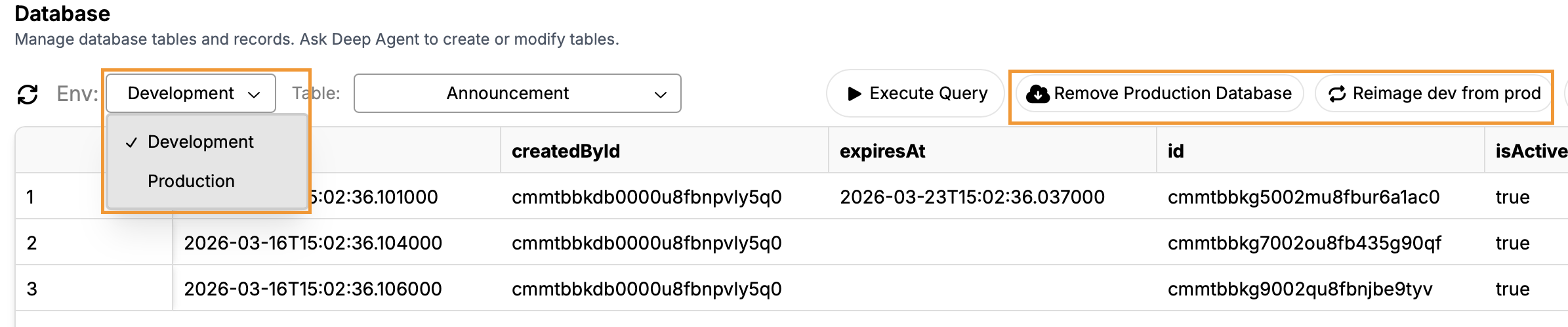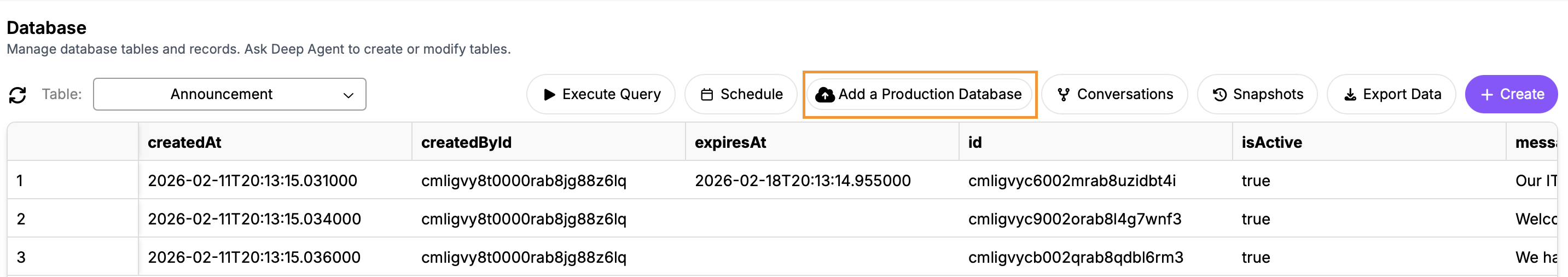 DeepAgent - Production Databases​